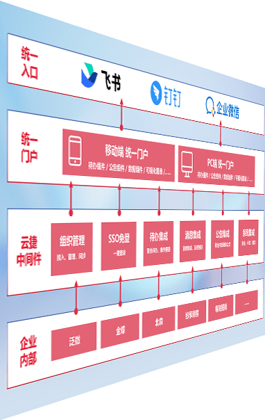 对协作平台提供支持服务,,,支持企业应用与协作平台对接,,,包含组织同步、、消息集成、、待办集成等。。。。支持目前主流的协作平台:钉钉、、、、企微和飞书。。。。